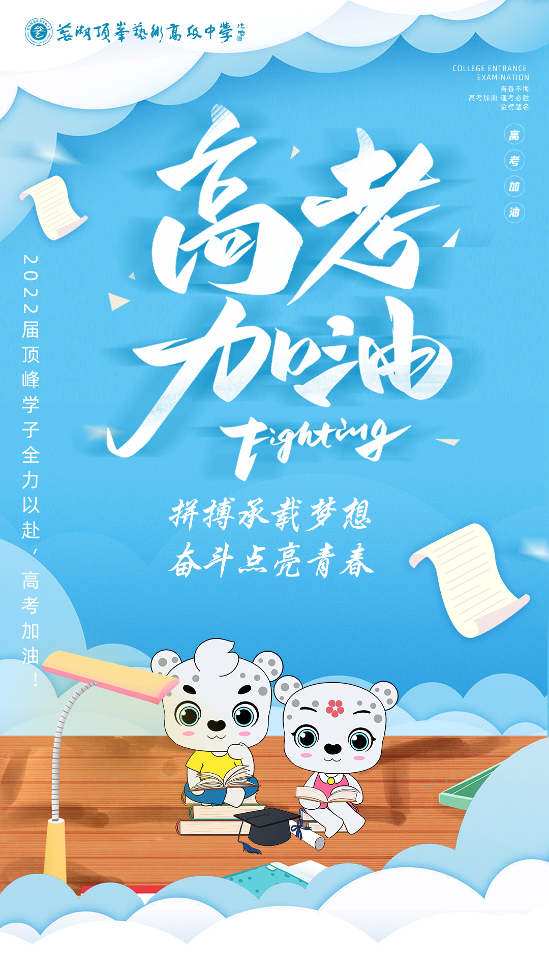 2022年高考已经进入倒计时。高高堆起的书,一沓沓试卷以及埋头苦学的高三学子是每个毕业班里最普通不过的场景,然而在这种普通中却藏着非凡的梦。 回首过去的时间里,我们的同学、老师、班主任、生活班主任……陪在2022届顶峰学子身边已经有了这么长的时光。在高考还剩下几天的时间里,他们用满满的心意、满满的期待送来了最诚挚的祝福,愿顶峰高考学子们乘“峰”破浪,全力以赴,收获成果。 √NO.1不负青春 最真挚的祝福 ,时长02:21 高考,是一场难以忘怀的青春盛宴,也是一场蓄势待发的追梦旅程。高考将至,顶峰艺术高中的校长老师们、高三班主任团队、高三生活班主任团队们也为大家开启了一波“花式”祝福,简单的话语潜藏最真挚的祝愿,为高考生们加油助威。 √NO.2逐光追梦 我们并肩前行炎炎的夏日里,老师们送来清凉的水果。愿孩子们高考一帆风顺、平平安安,也寓意着学子们能在高考中全力以赴,取得好成绩。 老师们将水果分发到每位学生的手里,并向他们表示临考前的祝福。这样的暖心举动,让学子们的脸上都绽开了笑容,甜蜜的水果让孩子们吃在嘴里、甜到心头。 √NO.3韶华不负 为梦全力以赴 ,时长00:11 考前助力,能量续航。学弟学妹们大声喊出自己的祝福,将自己的祝愿、自己对学长学姐的鼓励描摹成一张张色彩斑斓的画报。 *版面有限 仅展示部分 十年春风化雨 只为今朝笔下生花2022届顶峰艺术高中的学子们你们即将离开母校逐梦高考沙场长风破浪会有时愿你们全力以赴 奔赴山海愿你们挥毫纸间,终得偿所愿 END