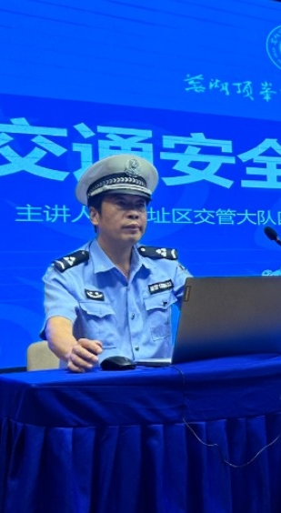 交通安全讲座特别邀请了湾址区交管大队四中队(六郎中队)交警宣礼好主讲,从人、车、路、公民义务及交道设施五个方面,引导同学们自觉遵守交通法规,摒弃交通陋习,养成好良好的安全出行习惯,全力打造“平安校园”。