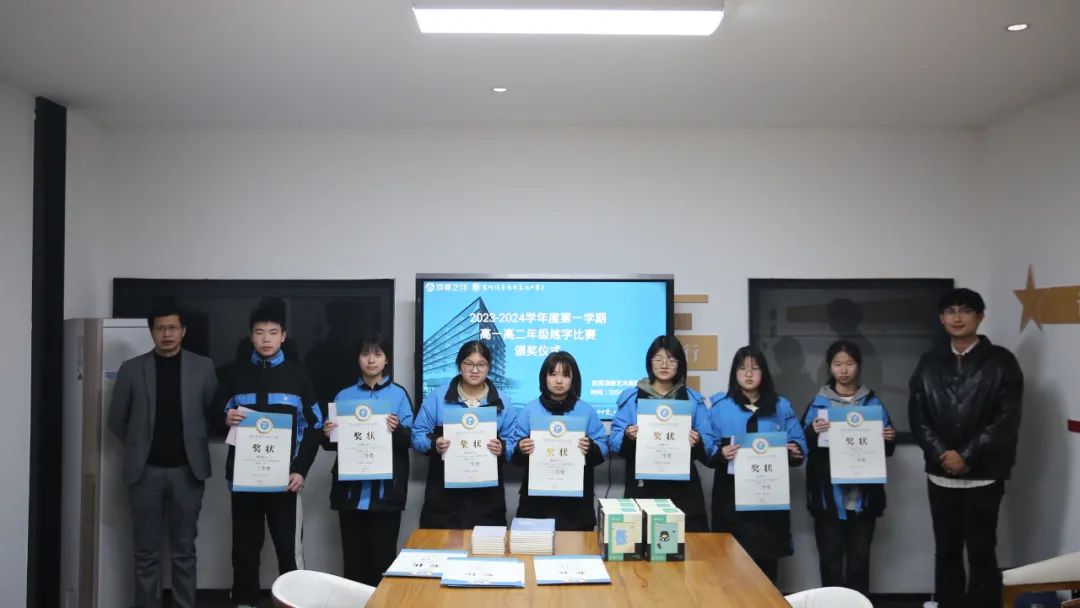 赛事有终,传承不止。循序渐进地练习让孩子们在这氤氲的笔墨之间,写一手好字,感受文字之美;伴一生有益,尽享书写之乐。我校更将持之以恒,开展每日练字课程,让孩子们养成良好的写字习惯,提高审美情趣和道德修养;孩子们也要拿出三年高中生涯最需要的“坚持”精神,去躁静心、持之以恒,让妙笔之花开得更加绚烂!