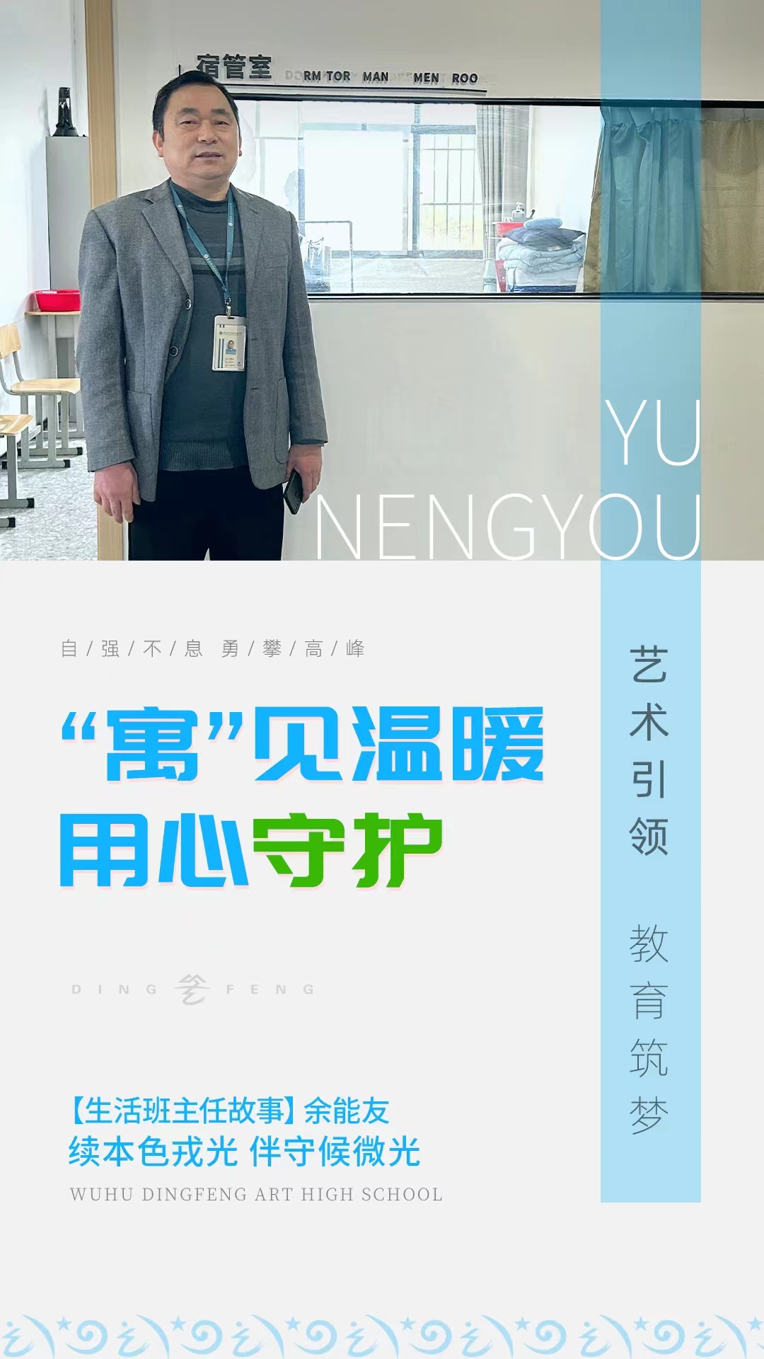 天还未明,清晨第一份光亮还没抵达宿舍,叮铃铃的闹钟声就已准时响起,男寝五楼的生活班主任余能友快速洗漱完毕,一边整理发翘的衣领,一边六点准时敲门喊同学们起床。