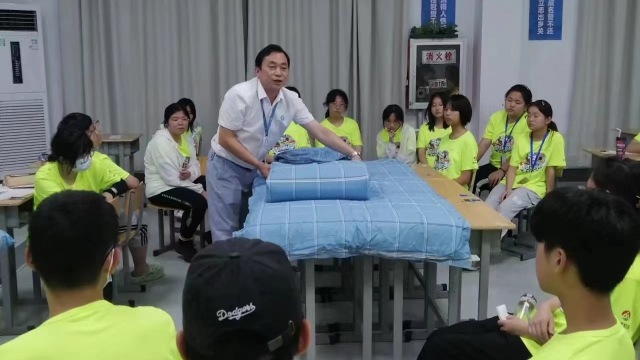 每当新生开学军训之际,余教官充分发挥军人纪律严明的光荣传统,手把手教新生收拾内务。从叠“豆腐块”、床铺的整理,到地面的清扫、物品的摆放,一条条标准制定,一次次严格要求,一遍遍耐心指导,让同学们从军训这“开学第一课”中真正长大。
