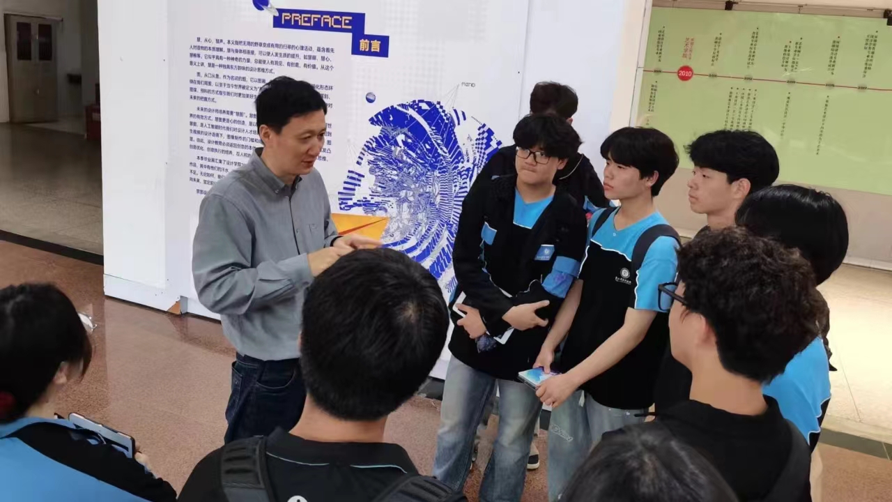 参观过程中,安徽工程大学设计学院胡书记也与我校参观学生一同欣赏了这些充满创意与美感的设计作品,并对此次展览的设计主题、艺术理念进行阐述,对作品进行讲解分析,学生们认真倾听并深受触动,纷纷分享观展心得,表示收获颇丰。