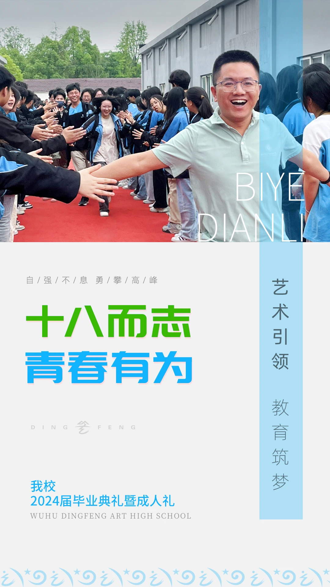 三载光阴倏然而逝,毕业骊歌悄然奏响。21年的盛夏,你们怀揣着艺术梦想来到芜湖顶峰艺术高中,那些追星赶月、共同奋斗的时光我们一起走过,每个晨光熹微和深夜沉静的学习时光中都有你我坚定笔触的抒写,如今时间的年轮让你们走到了十八岁,也迎来了人生重要的关卡——高考。 6月5日上午,芜湖顶峰艺术高中为2024届高三学子举行了毕业典礼暨成人礼仪式,共同见证同学们踏上人生新旅程的关键时刻,为成长喝彩,为逐梦壮行! 青春正好,策马扬鞭奋蹄前 全体起立齐声高唱国歌 2024届学子们 第一次以成年人的身份向祖国报到 青春不说再见,只道前程似锦 成长之路,从不是孤独的旅行 离不开那些默默的支持与鼓励 也正因为有老师、家长和同行的好友 求学路才丰富而璀璨 在各位学子即将踏上新征程的当下 铭记于心上,珍重于路上! 《星辰大海》 《大学》 梦想成真,所行皆坦途! 温馨与感动在此刻交织 学生集体宣誓 有一路的击掌助威 孩子们即将迎接自己人生的高考战场 祝勇赴战场的顶峰学子们全力以赴 \ 迎新时,宿管老师迎来朝气蓬勃的你们 今天依旧不缺席最后一次的校内暖心服务
