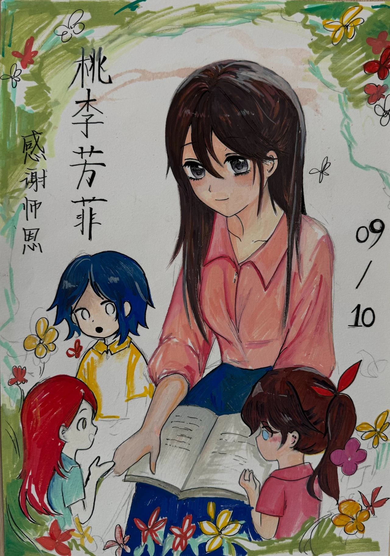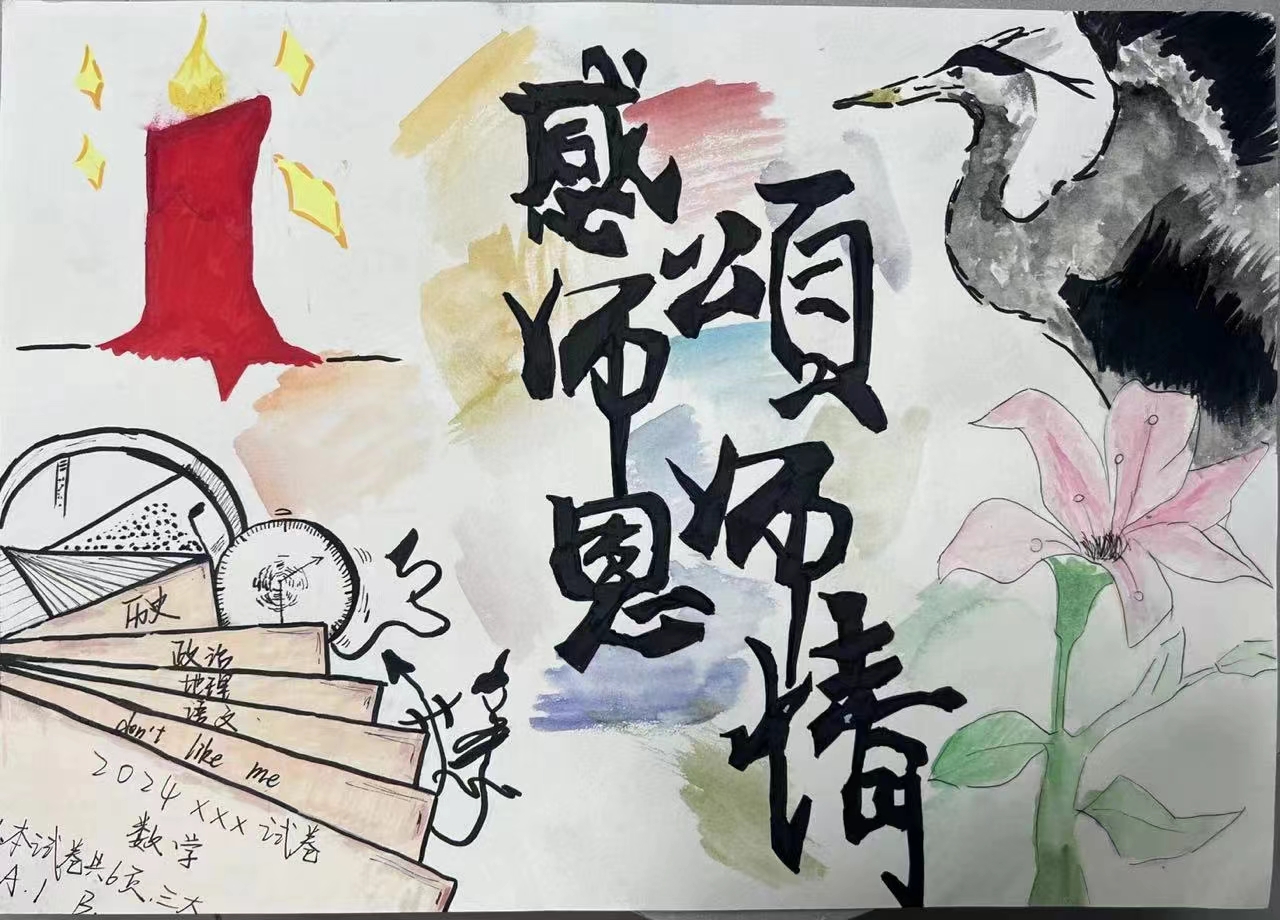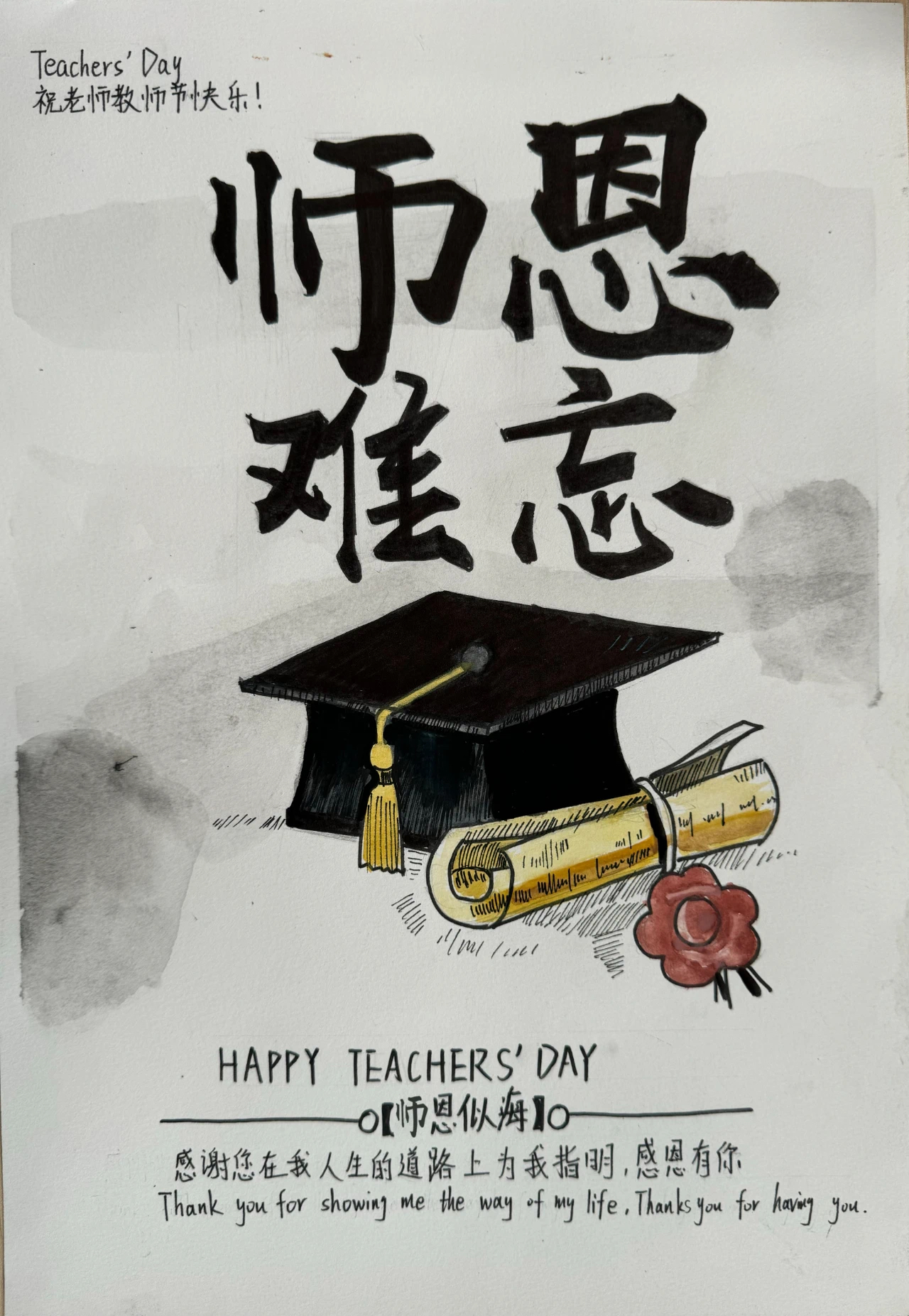 朝阳不息,你们育梦成光 润物无声,静待花开无数 又一年教师节,又一载桃李芬芳 顶峰艺高的高二学子们 用独有的方式献出画作 向辛勤耕耘在教育田野上的老师们送上祝福 / 一点一滴,不忘老师们春风化雨的教诲 一笔一画,孩子们用心描绘“爱”和“敬” 让我们一起走进同学们的作品 一起感受这一份份赤子之心! 作品名称:《师恩如灯,照我前行》 作者:高二/洪圣羽 指导教师:刘千清 作品名称:《师恩难忘》 作者:高二/范艳婷 指导教师:万伟 作品名称:《教师节快乐》 作者:高二/江莉 指导教师:丁皓玲 作品名称:《指路明灯》 作者:高二/管文慧 指导教师:朱敦诚 作品名称:《教师节快乐》 作者:高二/胡美幻 指导教师:丁皓玲 作品名称:《桃李满天下 春晖遍四方》 作者:高二/张程 指导教师:洪李慧 作品名称:《致谢师恩》 作者:高二/周怡 指导教师:陶洋 作品名称:《难忘师恩》 作者:高二/冯净 指导教师:洪李慧 作品名称:《教师节》 作者:高二/罗沐筱 指导教师:朱敦诚 作品名称:《感师恩 颂师情》 作者:高二/康诗涵 指导教师:丁皓玲 作品名称:《师泽如光》 作者:高二/郑沛雯 指导教师:王中华 作品名称:《教师节快乐》 作者:高二/姚冰冰 指导教师:洪李慧 作品名称:《教师节快乐》 作者:高二/谈欣怡 指导教师:万伟 作品名称:《致敬师恩 心怀皓月》 作者:高二/石怡蕾 指导教师: 丁皓玲 作品名称:《师恩难忘》 作者:高二/方思雅 指导教师: 陶洋 作品名称:《桃李芳菲》 作者:高二/潘妍 指导教师:陶洋 作品名称:《花香伴书香》 作者:高二/刘文菲 指导教师:朱敦诚 作品名称:《老师您辛苦了》 作者:高二/万文燕 指导教师:丁皓玲 作品名称:《师恩难忘》 作者:高二/水思宇 指导教师:万伟 作品名称:《师恩》 作者:高二/朱晨硕 指导教师:丁皓玲 *仅展示部分 学生们的画作中传递了满满的爱和真挚情感 让这个教师节更加温馨而难忘 愿师生之间的真情永远珍藏在心底 成为教育之路上最美丽的风景