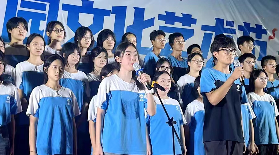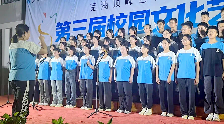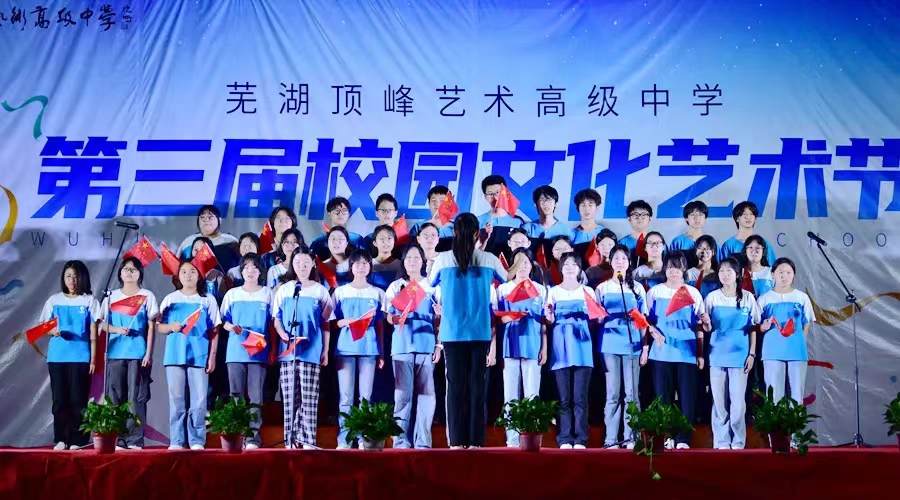 七十五载筚路蓝缕,新中国风华正茂,为传承爱国精神,增强民族自信,展现昂扬向上的学子面貌,体现青春活力的校园风采。在新中国成立75周年即将来临之际,我校于9月29日晚举行第三届校园文化艺术节开幕仪式暨“歌唱祖国 礼赞华诞”主题合唱比赛,全体顶峰学子用青春主旋律,唱响经典,为祖国庆生。 校园文化艺术节是学校文化的重要缩影 是全体师生展现艺术魅力的舞台 比赛开始前 执行副校长查付平宣布本届校园文化艺术节正式开幕 他表示学校将以此次合唱比赛为序幕 进一步开展丰富多彩的文化艺术活动 大力弘扬中国优秀传统文化 比赛现场 每一个参赛队伍都全心投入 用心传唱着一首首承载着厚重历史记忆的歌曲 唤醒了内心深处的爱国情怀 激励在未来奏响更为激昂的青春篇章! 合唱比赛以班级为单位进行 体会纯粹而炽热的集体荣誉感 让不同的声音凝聚成同样的信念 让青春的旅程 因这份团结与奋斗而更加意义非凡 台下观众全情投入 挥舞着手中的国旗 听旋律铿锵,映照热切初心