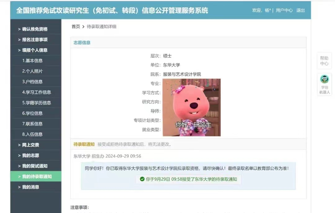 学习获奖:在大学期间连续三年班级第一,获得国家奖学金,5次一等奖学金,4次三好学生,两次优秀共青团员,1次优秀共青团干部。