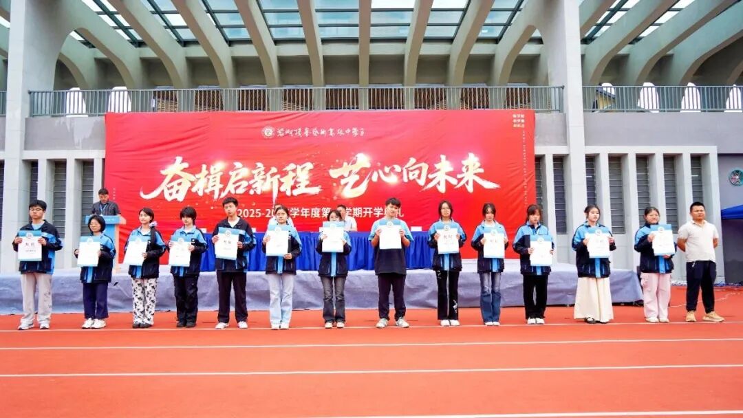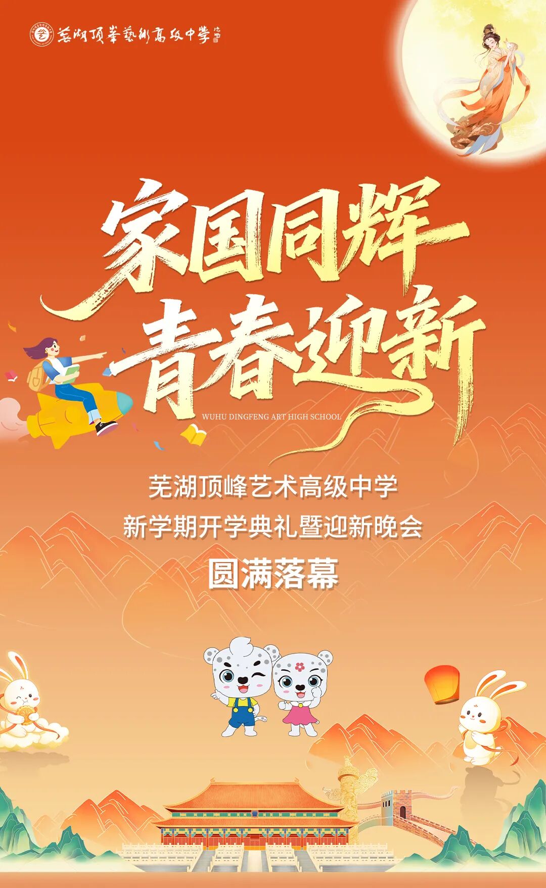 当“国”与“家”撞个满怀 当新生蓬勃朝气与顶峰迎新热潮交汇 我们心潮澎湃、共聚此时 这一天,不仅是“成长与热爱”的交融 更是“家国与青春”的回响 在开学典礼的国歌声中凝聚奋进力量 在主题迎新晚会以青春之姿告白祖国 9月21日下午,开学典礼在庄严的国歌声中拉开帷幕,铿锵旋律激荡爱国情怀。校领导、教师代表与新生代表相继发言,寄语新学期,凝聚奋进力量。典礼上对上一学年表现优异的学子进行表彰,以榜样之力激发全体师生追求卓越、勇攀“顶峰”的决心。 一年月色最明夜,同心共贺家国安。9月21日晚芜湖顶峰艺术高中&芜湖中华艺术学校联合举办“庆国庆迎中秋迎新晚会”。两校师生欢聚一堂,以青春之名告白祖国、以热忱之心传递祝愿,祝福伟大的祖国国泰民安,祝愿每一个人月满心圆! 月光所至,皆为故乡 红旗所展,皆是信仰 青春所向,皆为梦想 愿所有顶峰人怀揣今日的热忱与感动 承爱国之心,立华夏之志,圆复兴之梦 以青春之笔,绘就新时代的壮美画卷