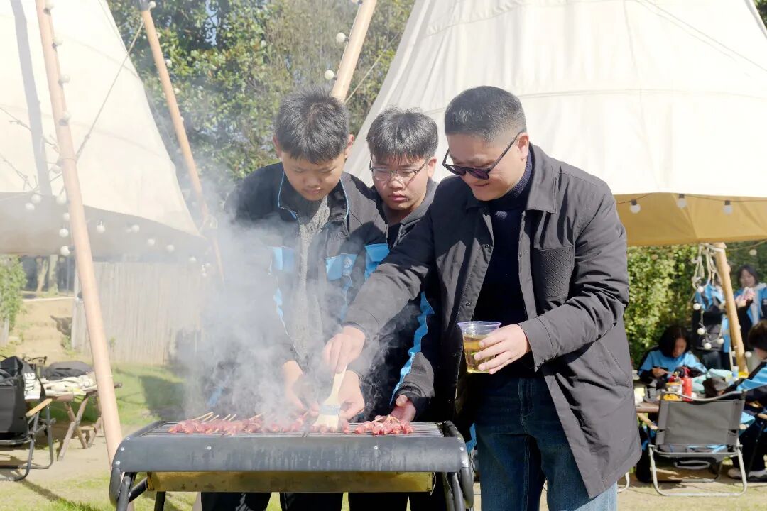 午餐的自助烧烤,老师和同学们围炉协作,一同烤肉、分享美食。炊烟袅袅间,是课堂之外平等愉快的交流,是师生情谊的升温。
