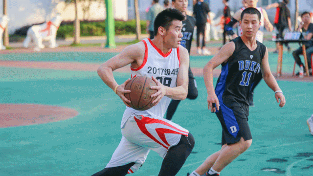 篮球健儿们运用各种战略战策伺机出击,以矫健熟练的动作迅速传球,或迂回或直逼篮板,赛场上你争我夺、你攻我守,不时上演精彩的团队配合。一次次精准的远投更是引来场外阵阵呐喊欢呼,我们都为赛场上激烈的角逐而沸腾。