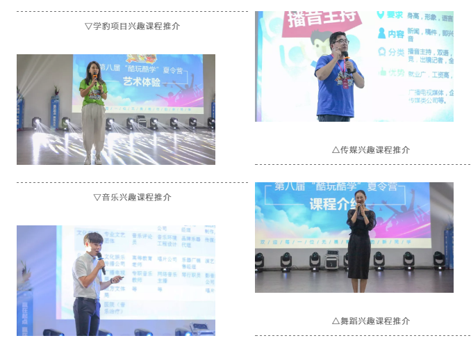 ▎第八届“酷玩酷学”夏令营 DAY 1 开拓视野,培养兴趣 融入团队,洞悉自我 塑造品格,触摸梦想 这就是“酷玩酷学”夏令营的意义! 营员报到 Campers Report 夏令营报到工作于14日清晨开始,家长和孩子们陆陆续续前来,报名现场一片火爆。负责接待报名的老师们沉着有序,从报名、缴费、分营、分宿舍,再到派发营服都是有条不紊,热情地为营员和家长服务。 虽然小小营员们从各地长途而来,但他们脸上浮现的更多是初次接触高中生活的喜悦以及对夏令营的期待。接下来的两周,他们将逐步了解顶峰富有特色的校园文化,提前接触多彩的高中生活,体验创意无限的艺术兴趣课……希望乐趣无穷的“试学”夏令营能够帮助孩子们感受我校特色办学的魅力,选择适合自己的人生方向,坚定自己的梦想,无畏前行! 开营仪式 Opening Ceremony 身着靓丽营服的营员们鱼贯而入 一场活力四射的击掌欢迎仪式 开启在顶峰携手逐梦的约定 /汪琳副校长致开幕词 开营仪式是整个夏令营的灵魂,把握住这个开端,才能带孩子们度过一个令其难忘的夏令营。开营仪式所设置的各个环节都是经过精挑细选的,目的就是让每位学生都能融入到这个充满热情和能量的大家庭里,由陌生到熟悉,由内敛到释放自己的个性! 兴趣课程推介 △美术兴趣课程推介 不同兴趣专业的 老师和学长学姐们秀出各自绝活 招募自己的营员 ▽▽▽ 同学们反响热烈 兴趣满满 ▽▽▽ 破冰小游戏 拉近同学们之间的关系 /互动满满 /获奖的幸运儿们 授旗仪式、入营宣誓 庄严的授旗仪式 营旗从汪副校长手中传递给陈营长 是一种责任的传递 新营员们 郑重宣誓接受夏令营的挑战 又一年“酷玩酷学”夏令营开营了 我们在顶峰相聚 第一次试着独立生活 一起挑战不一样的世界 享受一个丰富而有意义的暑假 与艺术、文学、兴趣、 理想……相伴成长 开启新的青春篇章! The End
