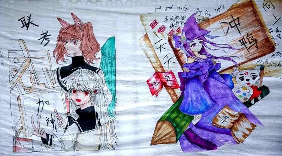 顶峰漫画社的学弟学妹们用行动、用稚嫩的画笔在顶峰校园留下自己最真挚的祝福为所有即将赴考的学长学姐们加油愿你们在省统考中释放洪荒之力发挥出最佳水平