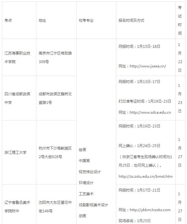 2.浙江、四川、辽宁考点允许非本省考生参加考试,未设美术考点省份的考生可任选一个考点参加考试。