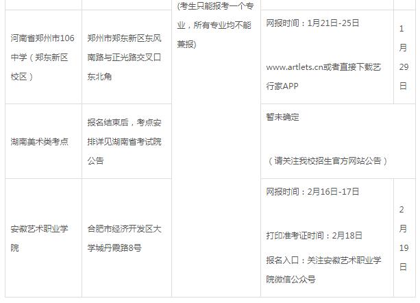 1.我校2019年在湖南、江苏、安徽、河南、浙江、四川、辽宁省设立美术类考点,以上省份的考生只能在本省考点参加校考。对在其他考点参加考试的成绩不予承认。