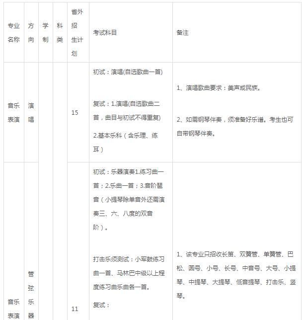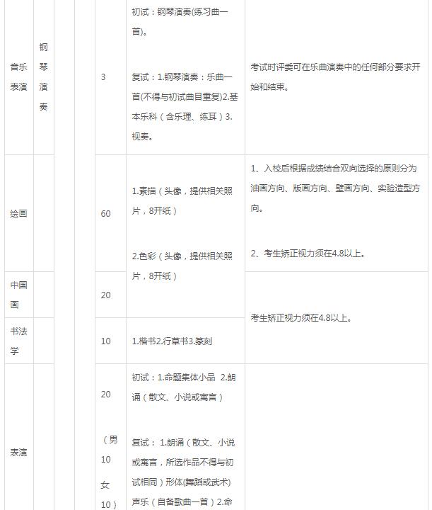 3.因各省对艺术类专业统考政策要求不尽相同,考生应依据所在省份的报考要求慎重报考;如考生违反所在省份文件政策及我校报考要求,致使校考成绩无效的,后果自负;考生报考专业涉及到所属省级统考有达标要求的,考生必须参加省级统考,且成绩合格,省级统考不合格的考生,参加我校专业考试成绩无效。