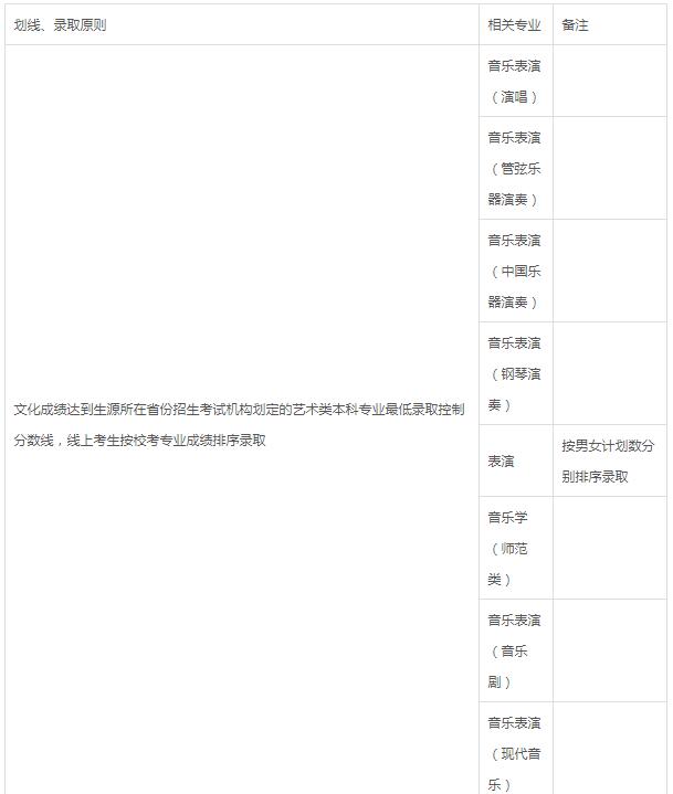 我校将根据专业成绩及合格比例划定专业合格线[划线原则:按计划数的4倍划定专业合格线,其中基本乐科(含乐理、练耳、简谱视唱)未过线,单科成绩为“0”分,专业总成绩不足60分,考试违纪或作弊的不在合格范围之内]。