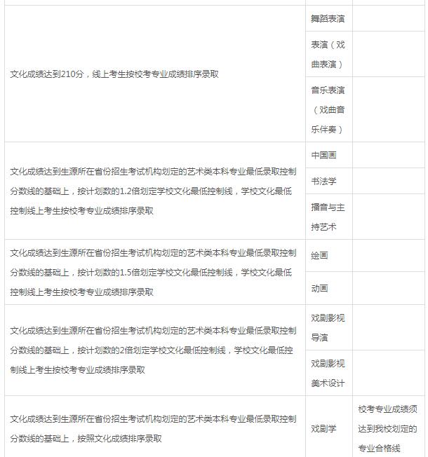 按照教育部有关文件规定,我校为独立设置的本科艺术院校,可自行划定文化录取控制分数线。如有部分省份要求文化录取控制线不得低于当地艺术类最低文化控制线,按各省份文件规定执行。
